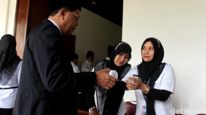 Tes urine digelar oleh Badan Narkotika Nasional Provinsi (BNNP) Aceh, Rabu (16/8/2017). Anggota Dewan terlihat menyerahkan urine mereka yang sudah dimasukkan ke botol yang disediakan BNNP. Petugas kemudian menulis identitas pada botol tersebut.