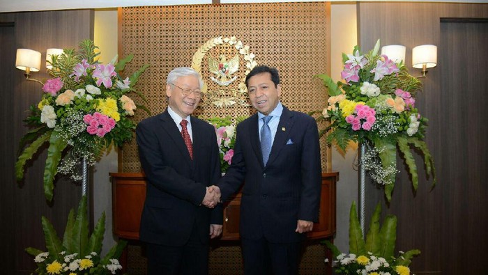 Nguyen mengawali kunjungan ke MPR dan diterima Wakil Ketua MPR EE Mangindaan di kompleks parlemen, Senayan, Jakarta, Selasa (22/8/2017). Tak lama setelah itu, sekitar pukul 15.45 WIB, Nguyen diterima oleh Ketua DPR Setya Novanto.
