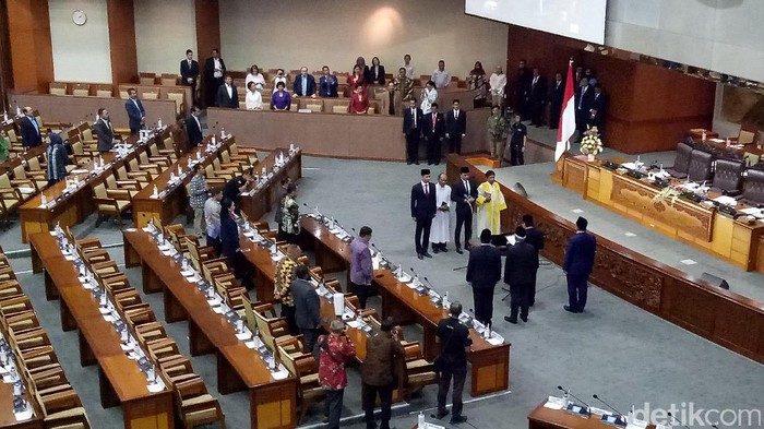 Usai pelantikan, suasana ruang paripurna cukup riuh. Ucapan selamat untuk anggota DPR baru itu terdengar.