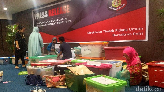 Paspor bisa diambil para korban First Travel di auditorium Tindak Pidana Umum Bareskrim Polri lantai 1 gedung KKP, Jl Medan Merdeka Timur, Jakarta Pusat, Jumat (25/8/2017).