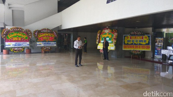 Berdasarkan pantauan di gedung DPR, Senayan, Jakarta, Selasa (29/8/2017), para karyawan sudah melangsungkan upacara peringatan HUT. Selain itu, akan ada pameran foto jurnalistik 'Warna-warni Parlemen #6 2017'.