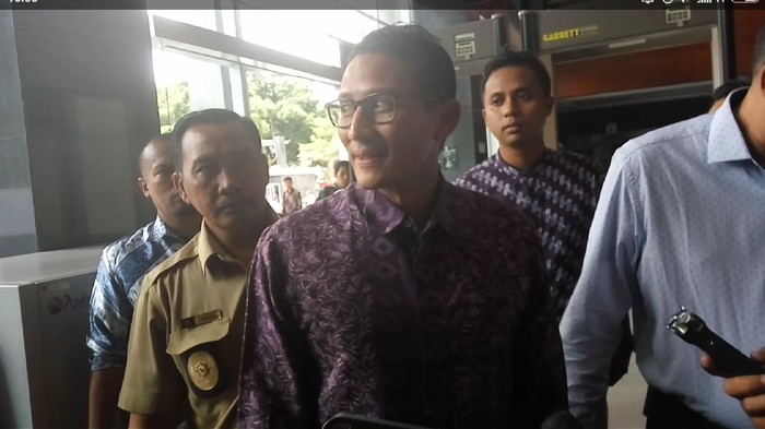 Sandiaga enggan memberikan komentar saat datang. Dia langsung menuju ruang tamu di lobi Pengadilan Tipikor.