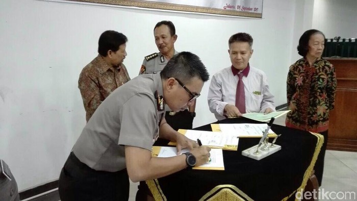 Penandatanganan surat hibah tersebut dilakukan di Mapolres Metro Jakarta Timur pukul 08.00 WIB tadi. Karo Satpras Polda Metro Jaya Kombes Dedi Kusnadi dan para perwakilan dari Yayasan Harapan Kita turut hadir.