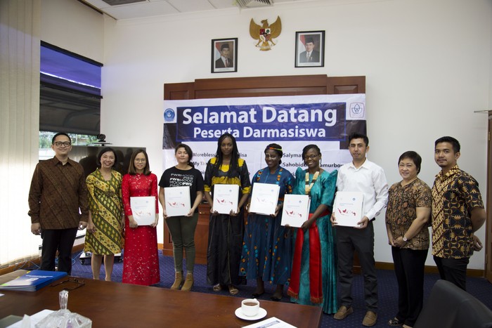 6 Mahasiswa tersebut yakni Mapolisa (Zimbabwe), My Thao Le (Vietnam), Dominique Nicole Portillo (El Salvador), Salymata Sarr (Senegal), Sahobiddini Mamurboy (Tajikistan), dan Flavia Nambooze (Uganda). Mereka datang dengan mengenakan pakaian tradisional negara mereka. Kemudian mereka diminta menandatangani kontrak beasiswa yang berisikan peraturan, kewajiban dan hak selama menempuh studi di President University.