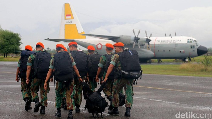 Sejumlah personel Paskhas TNI, wartawan, serta petugas BNPB masuk ke pesawat satu per satu. Burung besi dengan nomor register A-1316 itu parkir tak jauh dari hanggar.