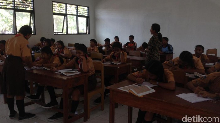 Ribuan pelajar pengungsi Gunung Agung sementara pindah sekolah. (Ibnu Hariyanto/detikcom) |