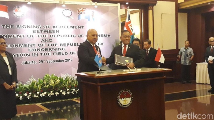 Penandatanganan 'Agreement between the Republic of Indonesia and the Republic of Fiji on Cooperation in the Field of Defence' ini merupakan lanjutan dari hasil pertemuan bilateral Menhan RI dan Fiji yang diadakan di Jakarta pada 4 November 2016.