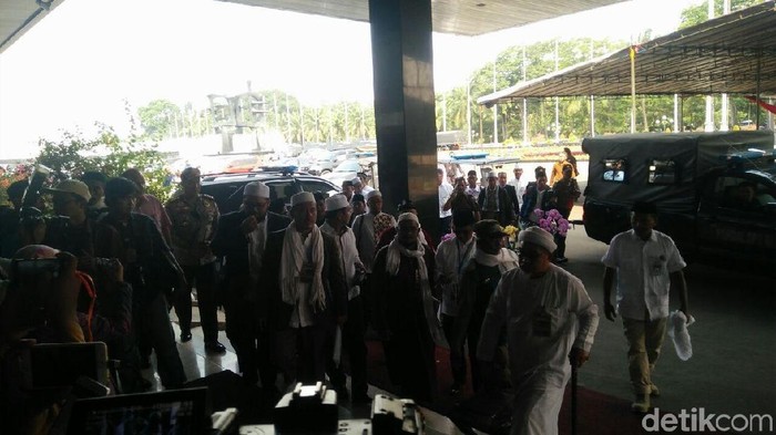 Mereka tiba sekitar pukul 14.25 WIB. Perwakilan massa datang menumpangi mobil pikap dan mobil golf. Salah satu yang datang ialah Ketua Presidium Alumni 212 Slamet Maarif.