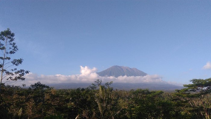 Foto: Gunung agung dari pos pengamatan ini jaraknya sekitar 15 Km dari kawah. Fotografer: Prins David Saut/detikcom