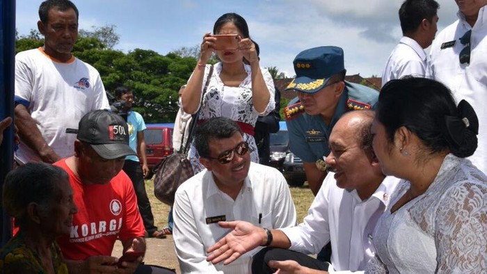 Ari mengunjungi titik pengungsian yang berada di Lapangan Ulakan, Manggis, Karangasem, Bali, Sabtu (30/9/2017). Dia didampingi oleh Deputi Inhuker Irjen Pol Abdul Ghofur, Kabiro Umum Laksma Suradi dan Kabiro Perencanaan Laksma Wayan Warka.