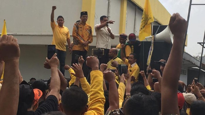 Foto: Dedi Mulyadi temui pendukungnya yang demo di DPP Golkar. (Arief/detikcom).