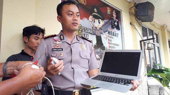 "Saya tahu dari teman lokasinya. Teman saya kurir HP online. Saya naik, ke atas tembok, kan ada pohon-pohon, terus temen saya nunggu di motor. Kan yang punya rumah tidur, ada laptop geletak saya ambil," ujar AO saat ditemui di lokasi yang sama.