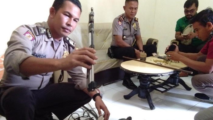 Polisi menemukan senjata api rakitan dan narkotika jenis sabu di rumah tersangka AZ (40), pelaku penganiayaan terhadap korbannya, IQ (22). (Datuk Haris/detikcom)