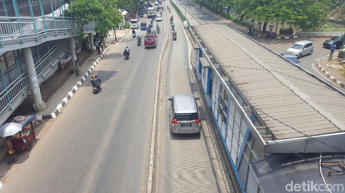 Motor dan mobil masuk busway di Pasar Rumput, Manggarai. (Zunita/detikcom)