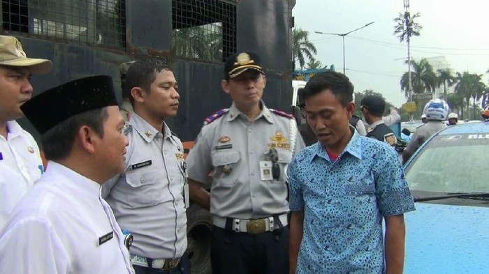 Tak hanya itu, petugas juga menemukan taksi yang parkir sembarangan. Petugas lalu meminta sopir taksi itu membacakan Pancasila.