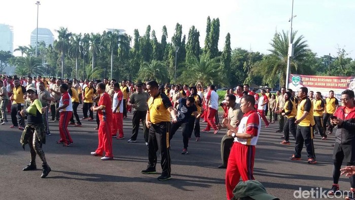 TNI-Polri olahraga bersama di Monas. Foto: Istimewa |