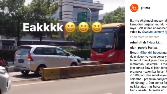 "Aksi mobil masuk jalurbusway dan kemudian berjalan mundur diSalemba Raya," tulisakun itu.