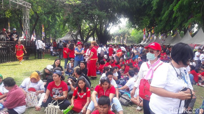 Pantauan detikcom, massa tampak mengenakan pakaian berwarna merah dan putih. Tampak juga beberapa massa yang mengenakan pakaian adat dari seluruh Indonesia.