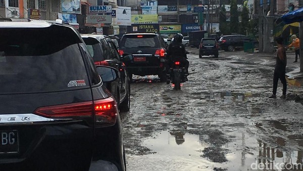 Sebelumnya, Jokowi melihat-lihat kota dan melintas di jalananan becek dan berlubang Kota Medan pagi tadi.