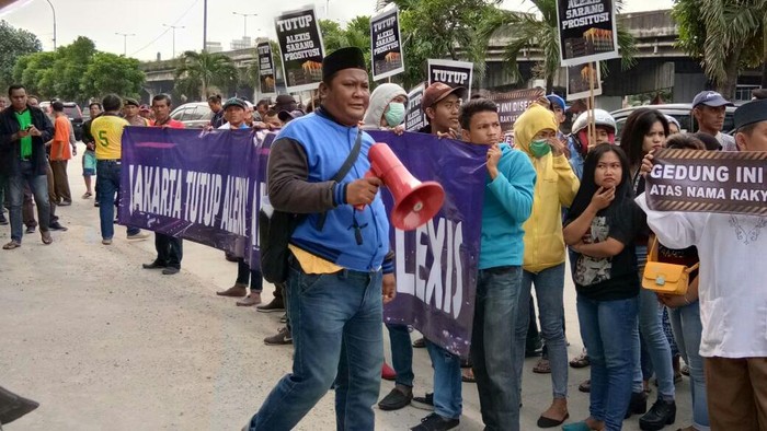 Di antaranya bertuliskan 'Jakarta Tutup Alexis.'Selain itu ada juga papan bertuliskan 'Tutup Alxis Sarang Prostitusi.'