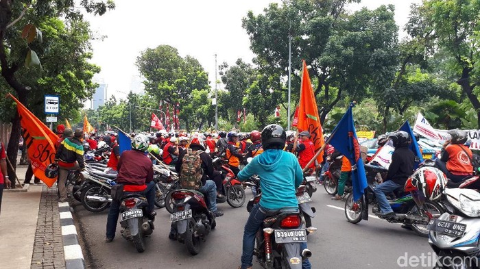 Rencananya, massa akan melakukan aksi lanjutan di Dinas Tenaga Kerja dan Transmigrasi DKI Jakarta, di Jalan KKO Usman, Jakpus (Foto: Cici Marlina Rahayu/detikcom)