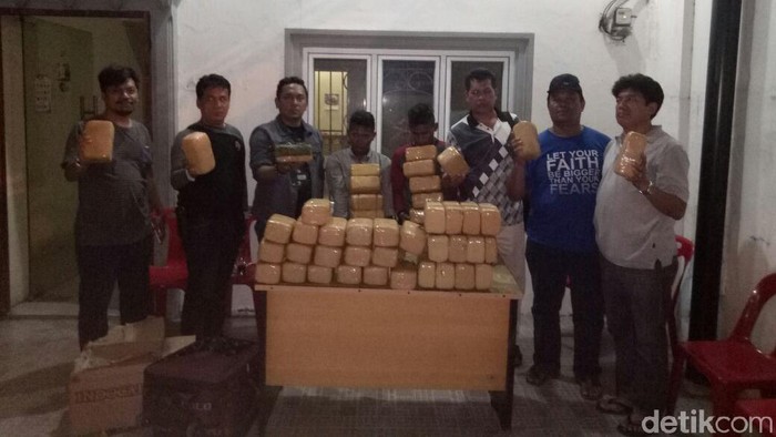 "Kemudian tim melakukan penangkapan terhadap kedua pelaku dan ditemukan 48 bal ganja yang beratnya 48 kilogram. Ganja itu disimpan di dua tas koper dan kotak," ujar Faisal.