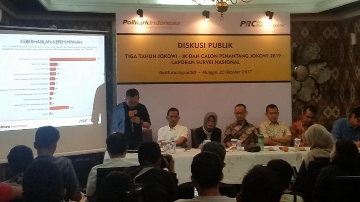 "Jadi berdasarkan survei yang dilakukan maka yang memilih Jokowi 44,3 persen," kata Direktur Polmark Indonesia Eep Saefulllah Fatah di Batik Teras Kuring, SCBD, Jalan Jenderal Sudirman, Jakarta Selatan, Minggu (22/10/2017).