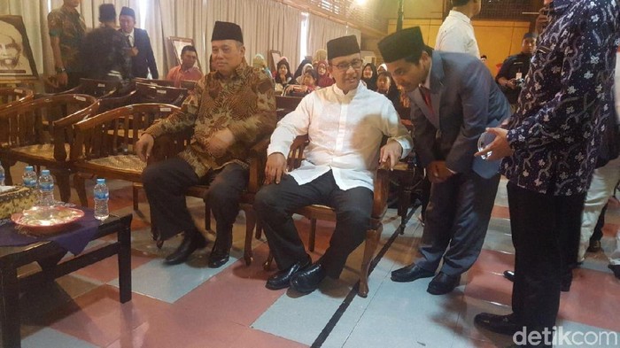 Berdasarkan pantauan Minggu (22/10/2017), Anies tiba pukul 13.05 WIB dengan menggunakan baju koko berwarna putih serta peci hitam. Selain itu ada pula Menristek Dikti Muhammad Nasir.