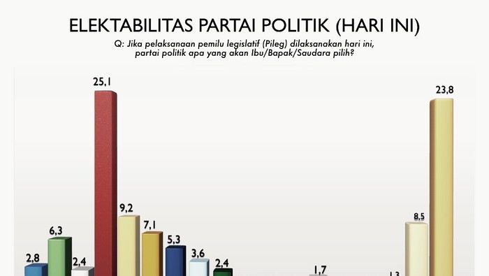 1. PDIP: 28,5% (2014), 25,1% (pilihan hari ini)