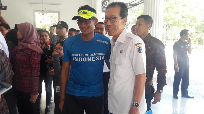"Tadi abis lari-lari di sekitaran kompleks," kata Sandi di Balai Kota, Jalan Medan Merdeka Selatan, Gambir, Jakarta Pusat, Rabu (25/10/2017).