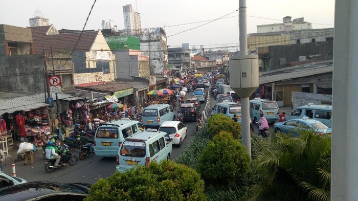 Pedagang kaki lima di sepanjang jalan menyebabkan kemacetan yang cukup parah. (Seysha Desnikia/detikcom) |
