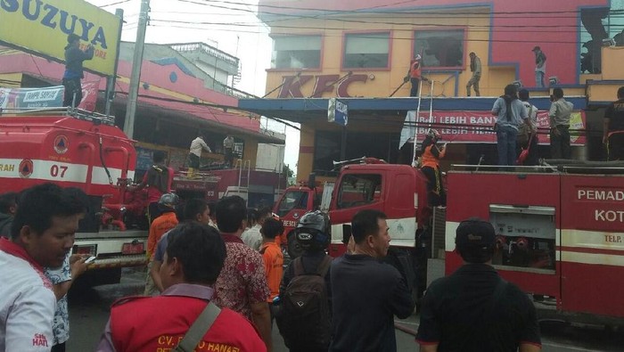 "Asal api kebakaran tersebut dari dapur KFC di lantai 2 Suzuya yang dikarenakan tabung gas LPG 40 kg meledak dan mengeluarkan suara yang keras," kata Rendra kepada detikcom.