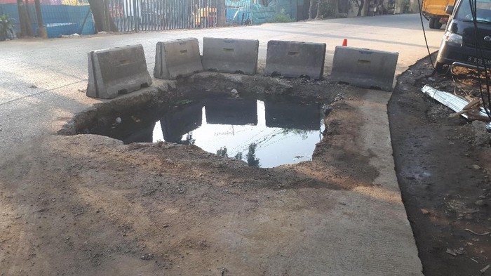 Gofur mengatakan galian sudah berjalan selama lebih dari dua pekan. Namun, pembatas jalan (kensteen) beton baru dipasang hari ini.