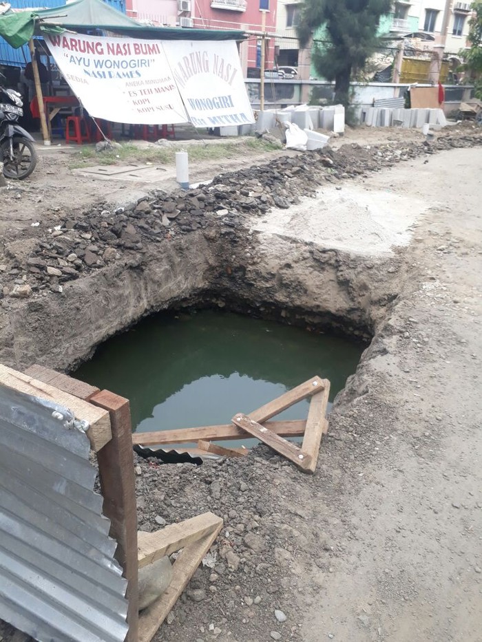 Galian boks utilitas itu memiliki ukuran sekitar 1,5x2 meter. Dari foto-foto yang diberikan Polda Metro Jaya, tampak genangan air memenuhi lubang tersebut. (cim/dnu)