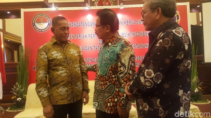 Perjanjian kerja sama itu ditandatangani Sekjen Kementerian Pertahanan Marsekal Madya TNI Hadiyan Suminta dan Sekjen Agraria Tata Ruang Badan Pertahanan Nasional M. Noor Marzuki. Dokumen kerja sama itu bernama 'Pensertifikatan dan Penanganan Tanah Aset Kemhan TNI'. Penandatanganan ini disaksikan oleh Menteri Pertahanan Ryamizard Ryacudu dan Menteri Agraria Tata Ruang Sofyan Djalil.