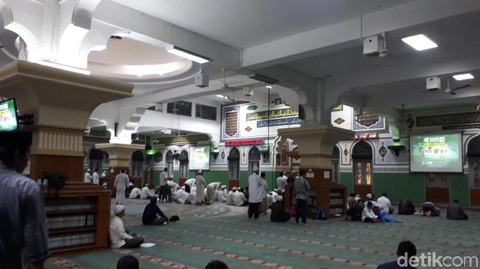 Belum terlihat penjagaan ketat dari aparat kepolisian di lokasi. Hanya petugas keamanan masjid yang berjaga di pintu gerbang maupun di dalam area pekarangan.