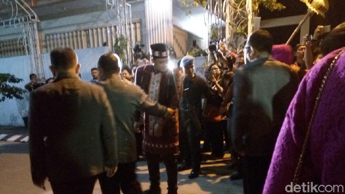 Bobby dan rombongan tiba di rumah Jokowi, Jl Kutai Utara, Sumber, Solo, Jawa Tengah, sekitar pukul 18.55 WIB, Selasa (7/11/2017). Bobby sempat menunggu seluruh rombongannya sampai sebelum turun dari mobil.