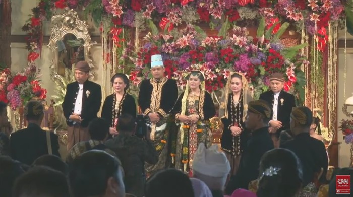Jokowi dan Iriana duduk di sisi kanan mempelai. Sedangkan ibunda Bobby dan sang paman duduk di sisi kiri.