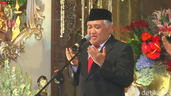 Din ditugasi membacakan doa saat resepsi kedua pernikahan Bobby-Kahiyang. Resepsi kedua ini dilakukan di Graha Saba Buana. (rvk/rvk)