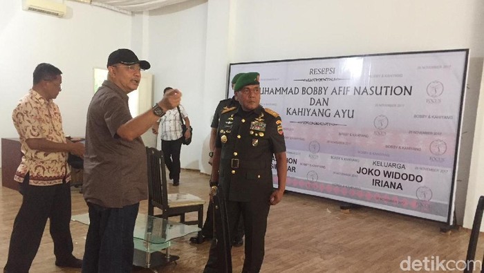 Pangdam I/Bukit Barisan Mayjen Cucu Somantri mengecek persiapan dan rencana pengamanan rangkaian acara pernikahan putri Presiden Joko Widodo, Kahiyang Ayu dengan Bobby Nasution, Sabtu (11/11/2017) Foto: Jefris Santama-detikcom