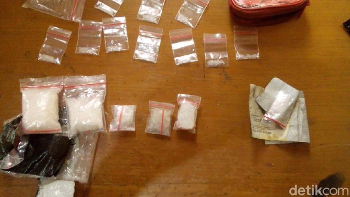 "Barang bukti yang didapat dari pelaku ada 10 klip plastik narkotika jenis sabu yang beratnya 5,04 gram, lalu 1 klip plastik narkotika jenis sabu yang dilakban dengan uang kertas Rp 2.000 seberat 2,80 gram, dan satu plastik sabu ukuran seberat 57,74 gram. Sehingga total berat barang bukti 65,68 gram," beber Andry.