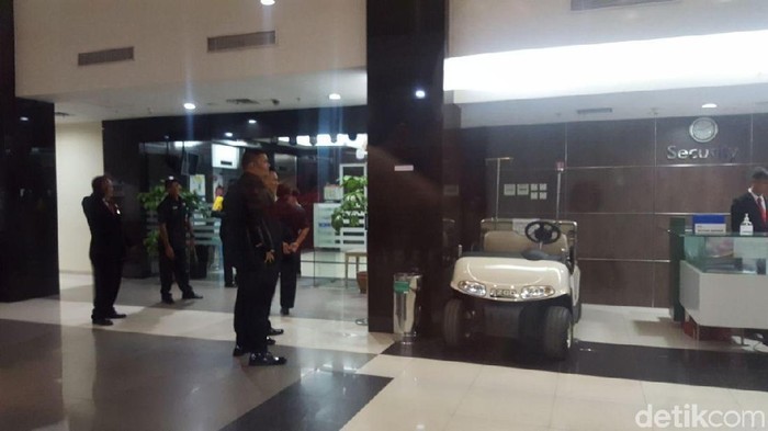 Pantauan di lokasi, Salemba, Jakarta, Minggu (19/11/2017) malam, sekuriti yang berjaga di lobby RSCM diperbanyak. Bila sejak pagi hingga sore hari hanya sekitar 4 sekuriti yang ada di lobi, malam ini ada sekitar 10 orang yang stand by.