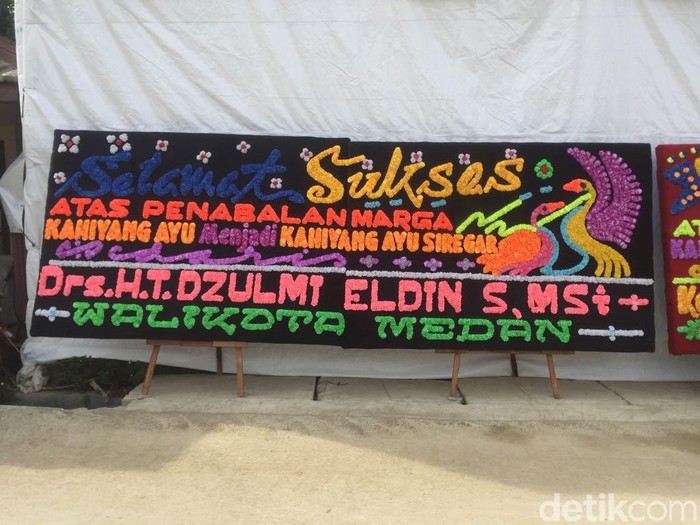 Foto: Karangan bunga di lokasi pemberian marga ke Kahiyang (Jefris Santama/detikcom)