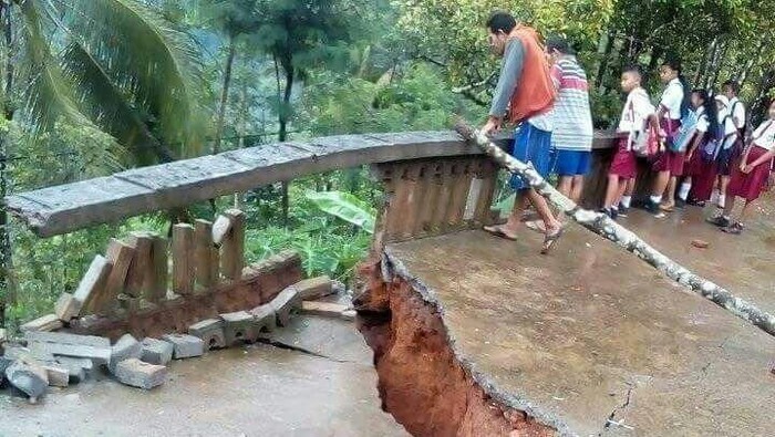 "Hujan intensitas ringan-sedang selama 2 hari mengakibatkan bencana alam tanah longsor yang berdampak pada plengsengan (tembok penahan, red) sekolah longsor sehingga jalan di bawahnya tertutup material longsor," ujar petugas piket jaga BPBD Trenggalek.