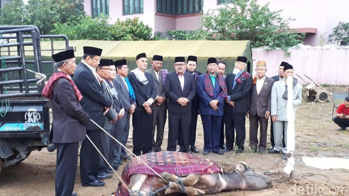 Kerbau ini akan dipotong nantinya. Pihak keluarga menjelaskan, hanya 1 kerbau yang dipotong secara simbolik.