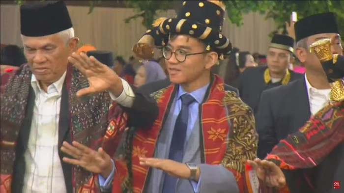 Setelah Kahiyang dan Bobby naik ke panggung pesta. Gibran berada di bawah panggung manortor atau menari tortor bersama para tamu undangan. Gibran memakai hiasan kepala khas Mandailing, bulang, dan juga ulos.