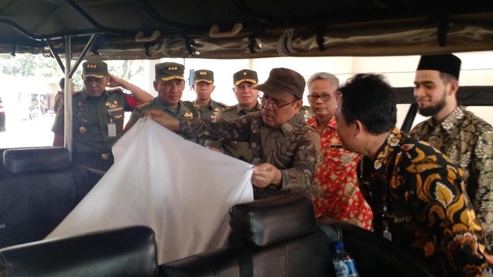 Di dekat Pratikno, nampak ada Kepala Staf Kodam I/Bukit Barisan, Brigjen Tiopan Aritonang. Sekitar kurang dari 5 menit dia memeriksa mobil listrik bermotif ulos ini.