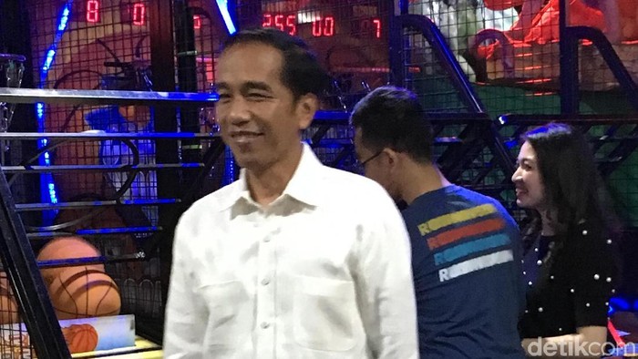 Jokowi terlihat makin bersemangat bermain ketika Jan Ethes berdiri di sampingnya, tepat di atas mesin permainan basket tersebut. Jokowi pun menunjukkan bagaimana cara memasukkan bola ke dalam keranjang.