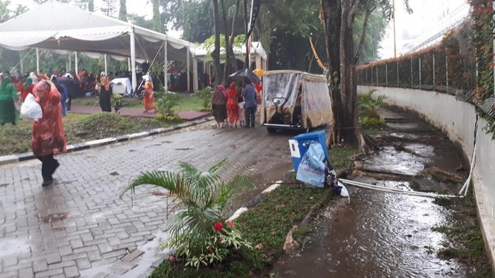 Pantauan di lokasi acara, Bukit Hijau Regency Taman Setiabudi (BHR Tasbi), Medan, Sumatera Utara, Sabtu (25/11/2017) pukul 13.00 WIB, hujan deras masih mengguyur. Namun ada sebagian tamu yang nekat pulang.