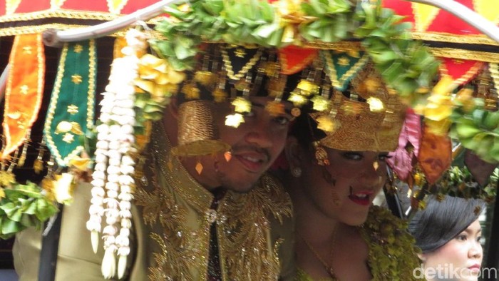 Sebelumnya, mereka menaiki kereta kencana dalam kirab. Kirab itu ditempuh sejauh 2,6 kilometer dari Medan International Convention Center (MICC).